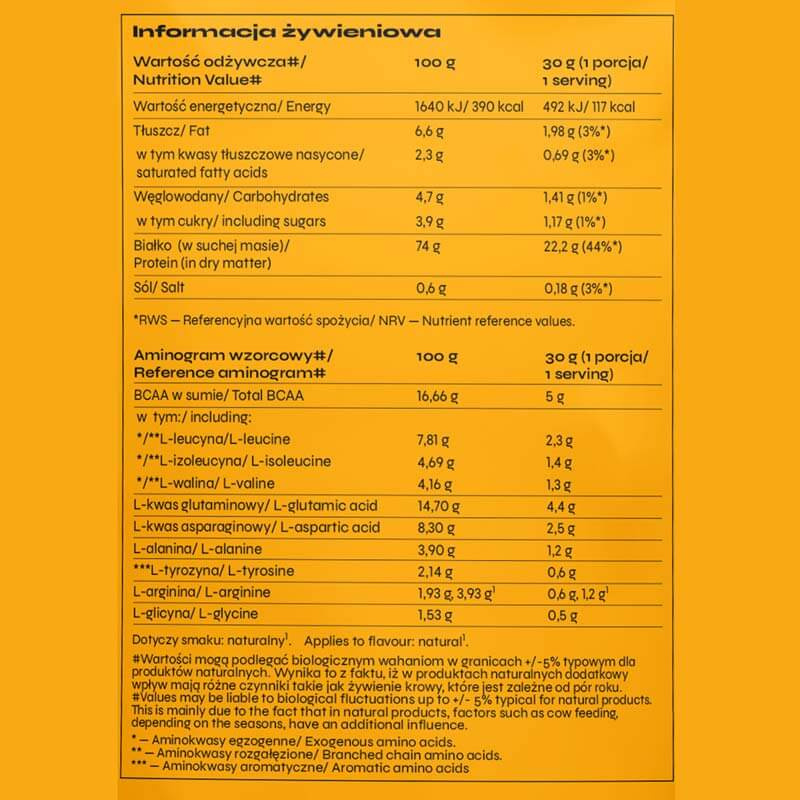 Odżywka wysokobiałkowa cechująca się świetnym profilem aminokwasowym. Dedykowana sportowcom, którzy chcą zwiększyć swoją masę mięśniową. Produkt bardzo dobrze rozpuszcza się w cieczy.