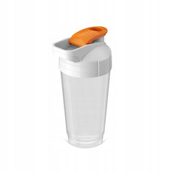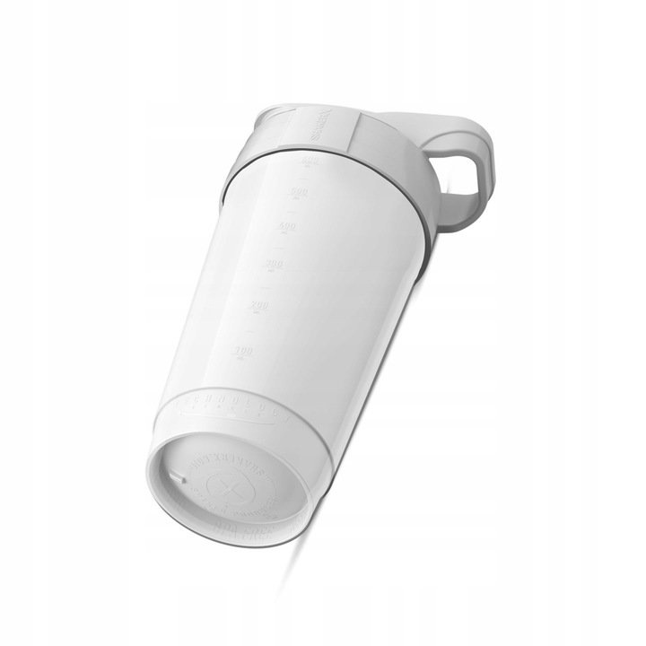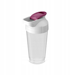 Produkt posiada także dokładną podziałkę w mililitrach, ułatwiającą precyzyjne odmierzanie płynów. Dyskretny, plastikowy uchwyt pozwala wygodnie przenosić shaker, co czyni go idealnym towarzyszem na siłowni.