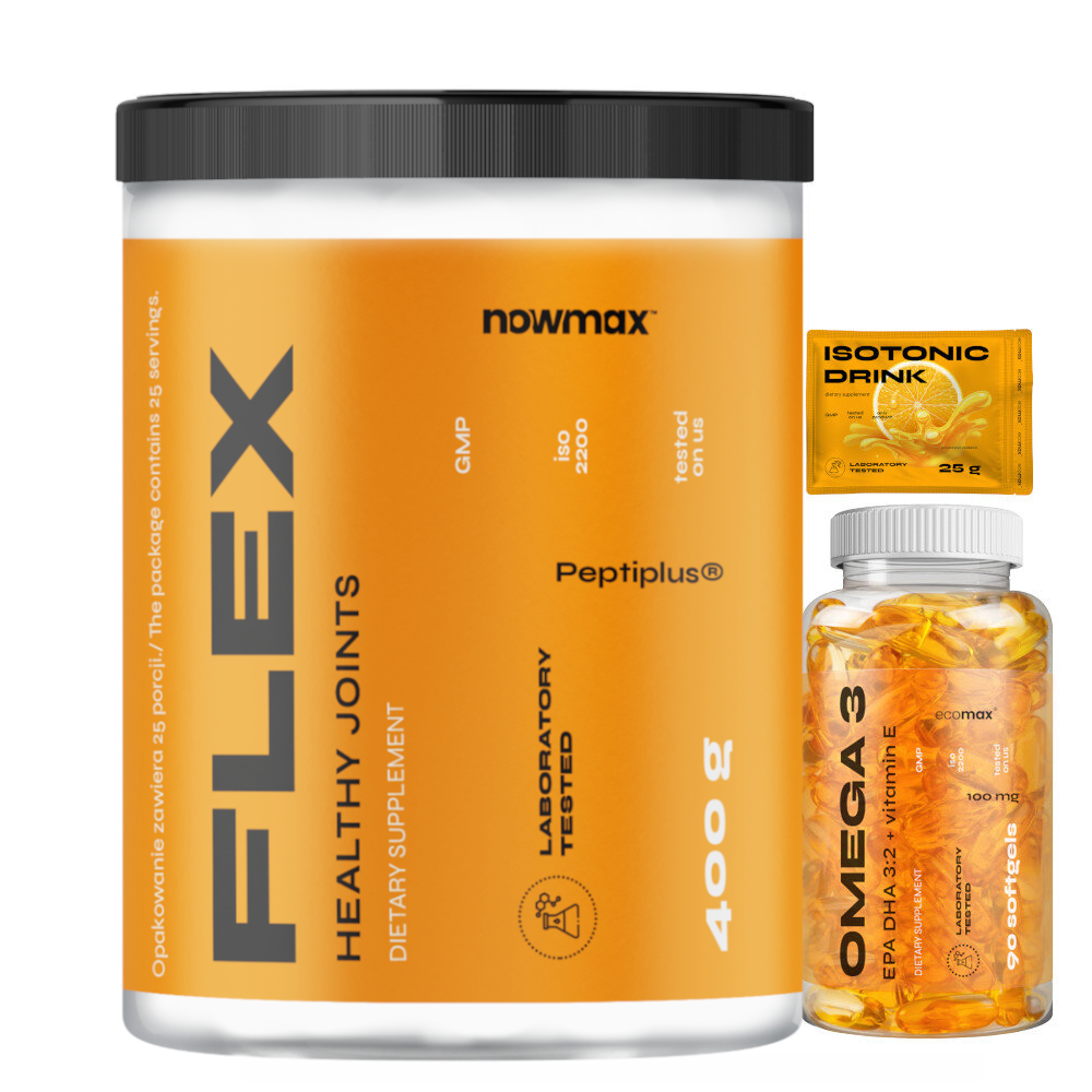 • nowmax® Flex Healthy Joints 400 g + nowmax® Isotonic Drink 25 g +  nowmax® Omega 3 1000mg + Vitamin E 90 kaps
